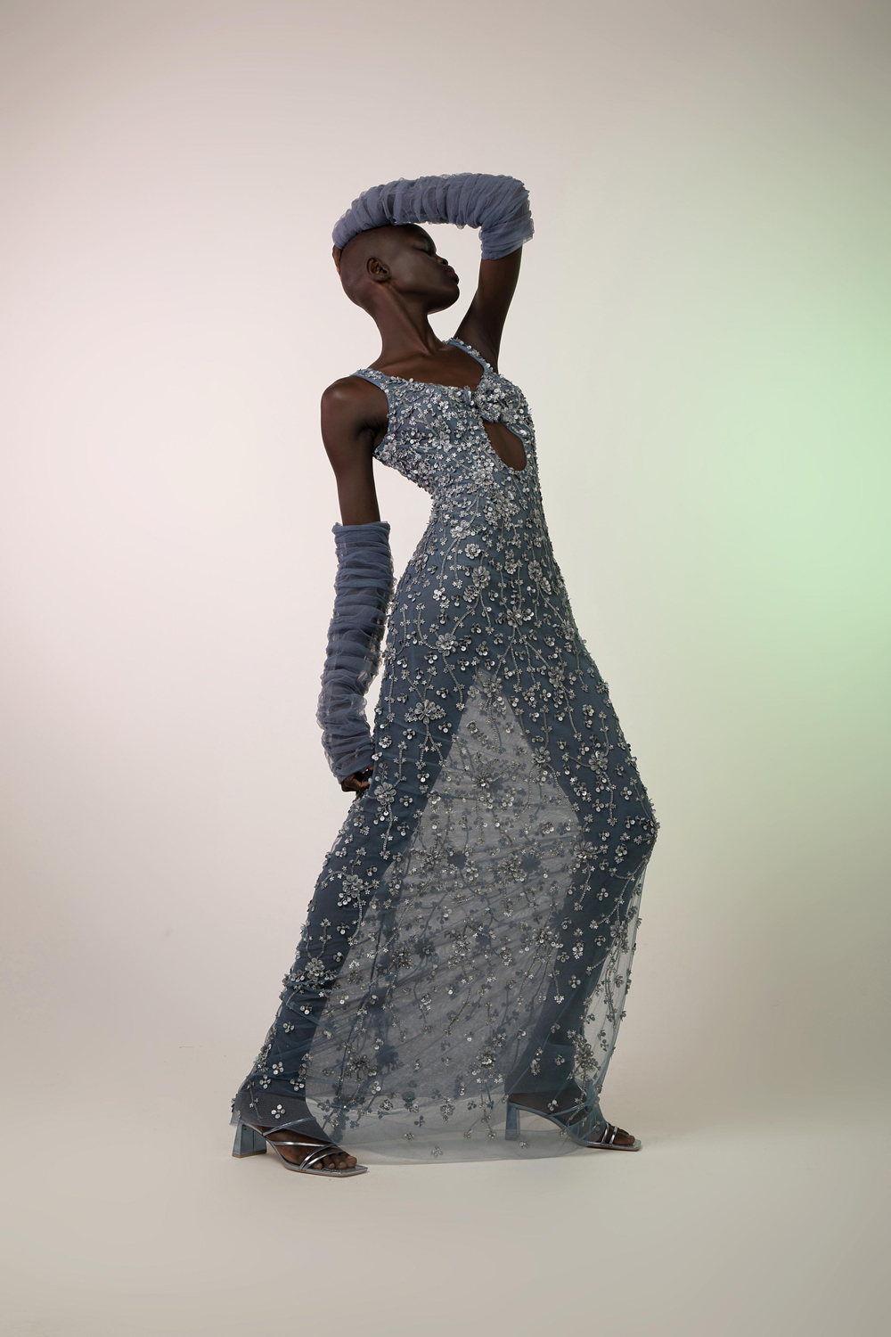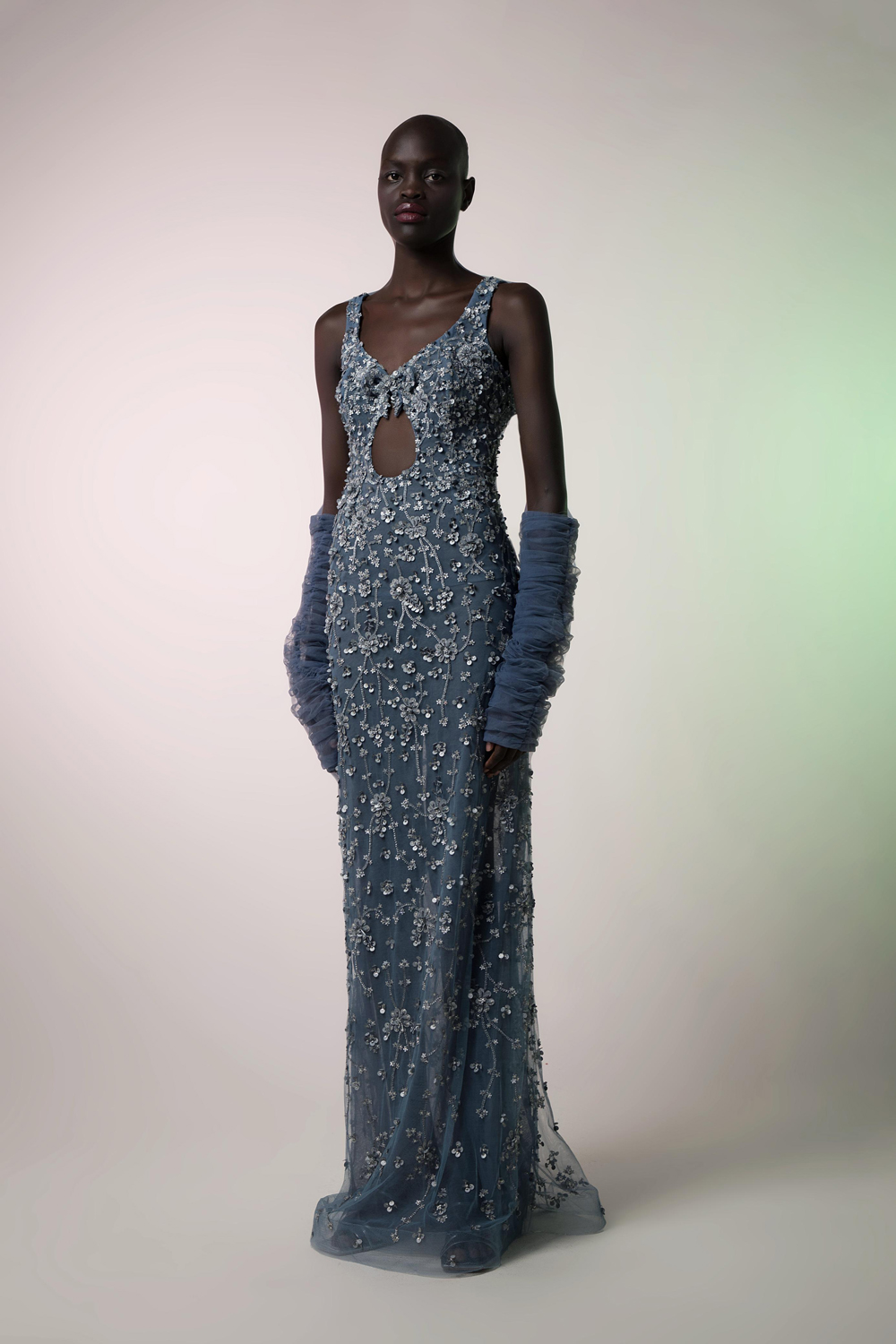 This exquisite fitted dress blends intricate embroidery with bold sophistication, creating a show-stopping piece for any occasion. The entire dress is adorned with delicate, full embroidery that adds texture and depth, creating a rich, detailed design that captures the eye from every angle. The bodice features a flattering sweetheart neckline that enhances the décolletage with a timeless, feminine touch, while the keyhole cut-out adds a hint of allure and modern elegance. The fitted silhouette perfectly hugs the body, highlighting the curves and providing a sleek, polished look that exudes confidence and grace.