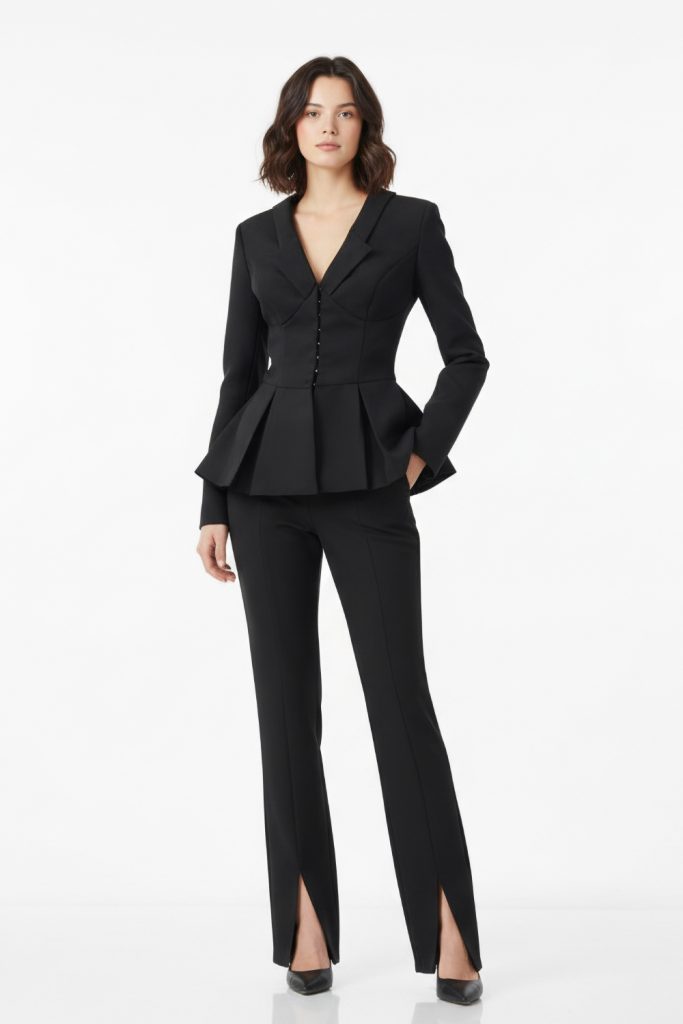 • Fitted ruffle-hem blazer